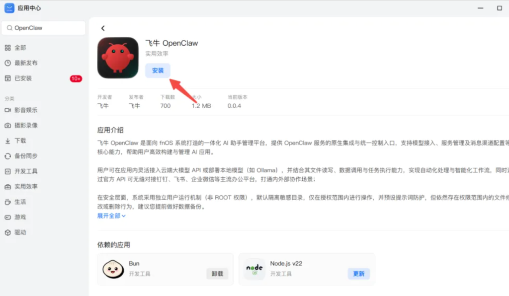 下面是详细的安装教程,无需代码,傻瓜式安装,不得不说飞牛系统真棒!!!